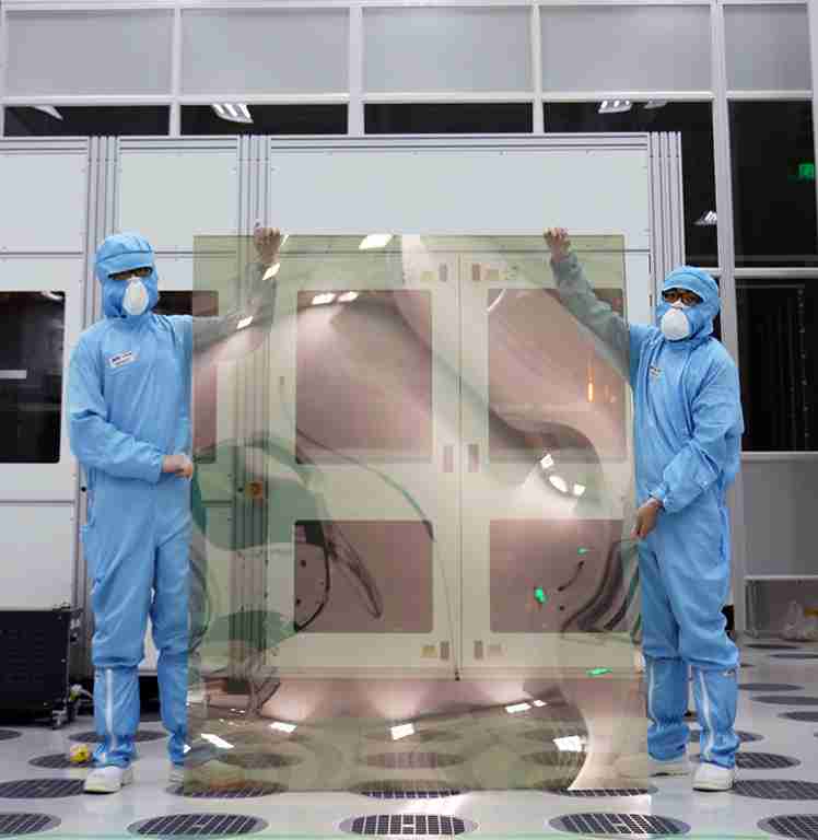 菠菜论坛昆山厂第六代 LTPS (低温多晶硅) 生产的玻璃基板尺寸为 1500x1850 mm (毫米)